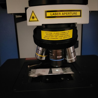 Figure 3. Inside a Raman Spectrometer lies a sample of a AuNP/ polystyrene system drop-casted onto cellulose filter paper.
